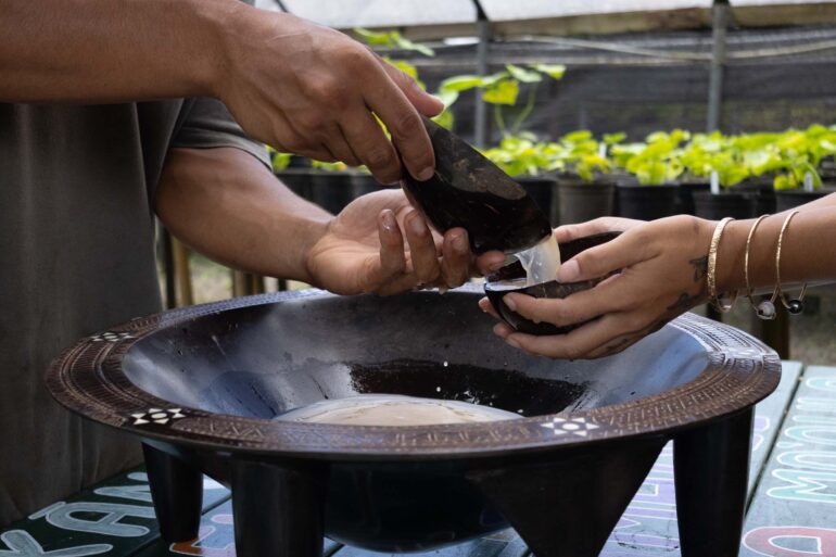 The white hibiscus tree looming before me has a thick, gnarly trunk brimming with endemic ferns, mosses, lichens, and bugs. It’s so large that it’s impossible to take it all in from one view. I find myself trying to delicately walk around it, as there are other native species planted in the understory. Its many outstretched branches spread up into the sky and blend into several adjacent hibiscus trees, forming a canopy 27 feet wide.